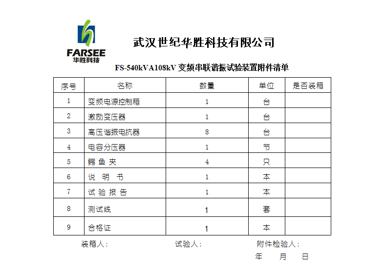 調(diào)頻串聯(lián)諧振試驗(yàn)裝置主要技術(shù)參數(shù)