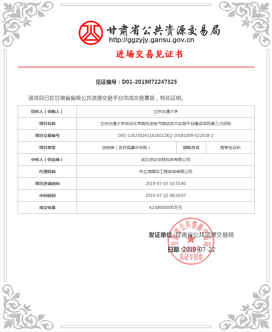 熱烈祝賀:武漢華勝公司在蘭州交通大學自動化學院先進電氣測試技術(shù)實踐平臺建設(shè)項目中標!為蘭州交通大學自動化學院先進電氣測試技術(shù)實踐建設(shè)貢獻自己的一份力量,為纖纖學子的學習之路奠定堅實的基礎(chǔ)!
