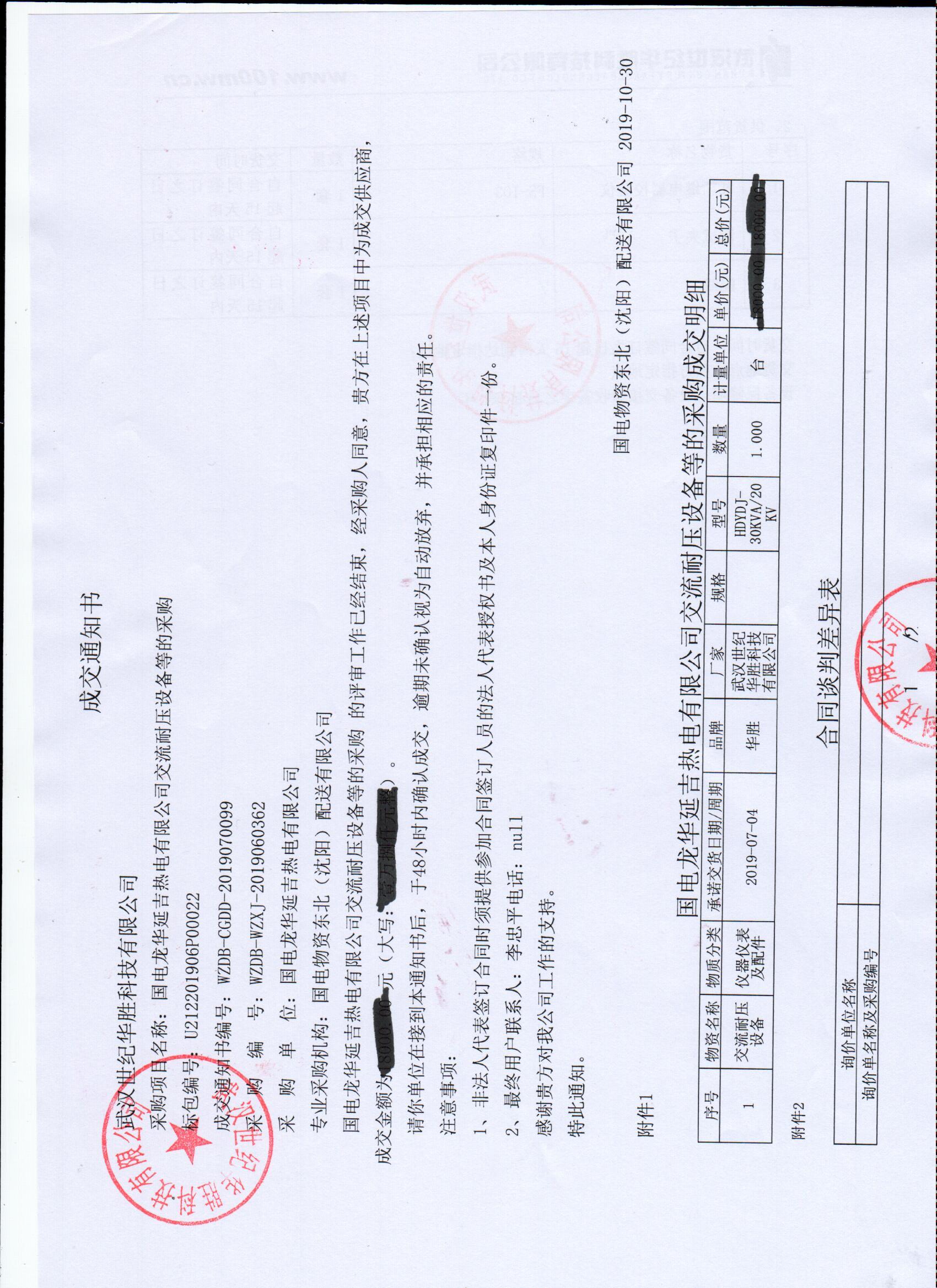 國電龍華延吉熱電有限公司交流耐壓設(shè)備等的采購