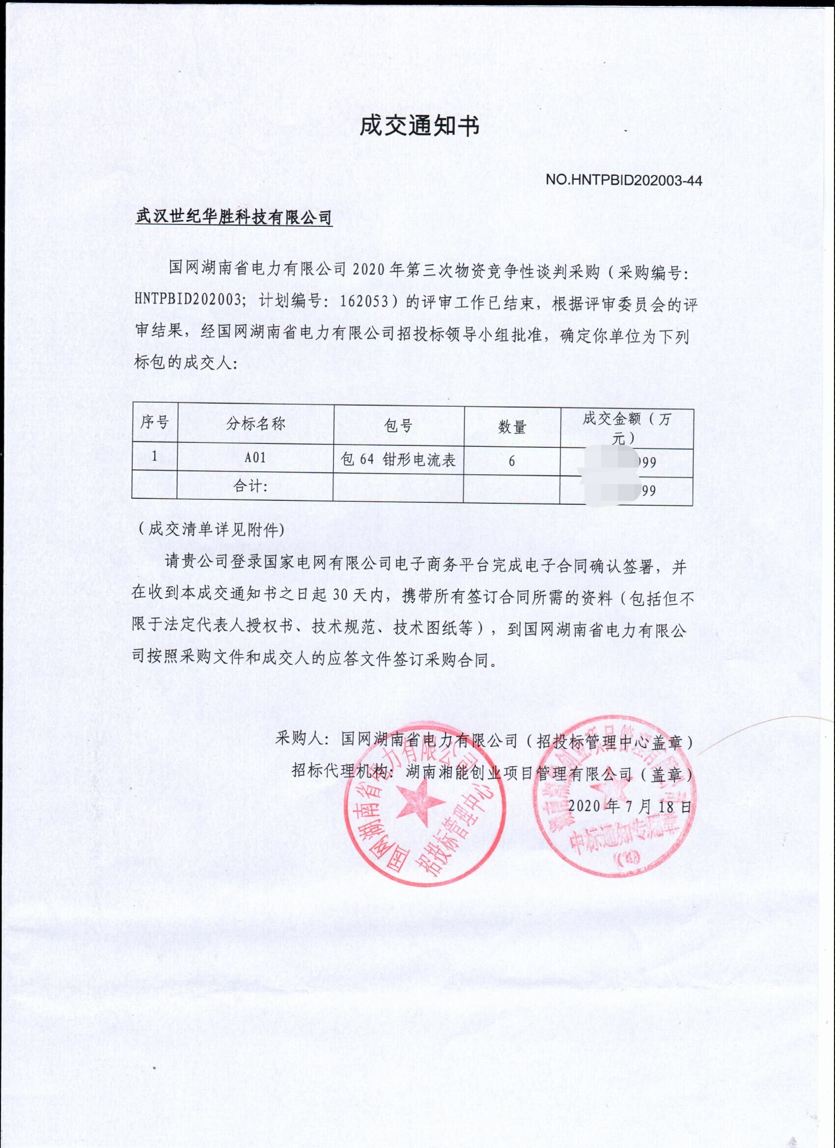 我司在國網(wǎng)湖南省電力公司2020年第三次物資競爭性談判采購項(xiàng)目中標(biāo)